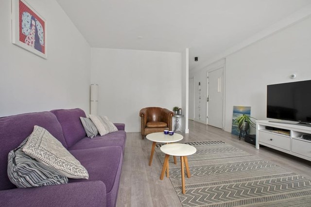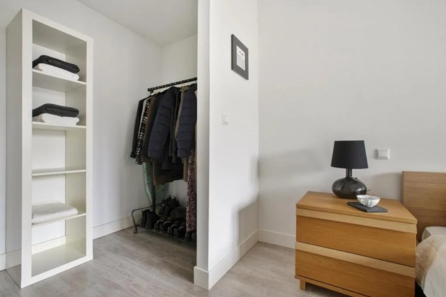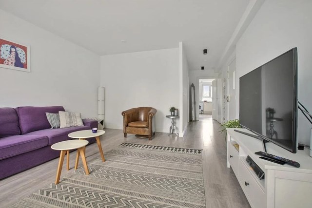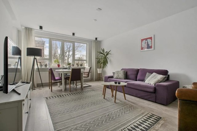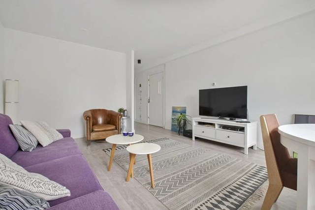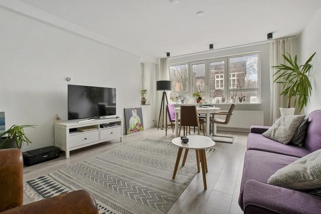 In Amsterdam is een portiekflat uit 1988 te huur. De woning heeft een oppervlakte van 55 m2 en bestaat uit 2 kamers. De huurprijs bedraagt € 2275 per maand. De borgsom bedraagt 2 maanden huur.