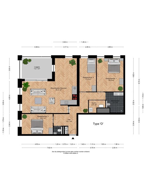 - Aantal slaapkamers: 3