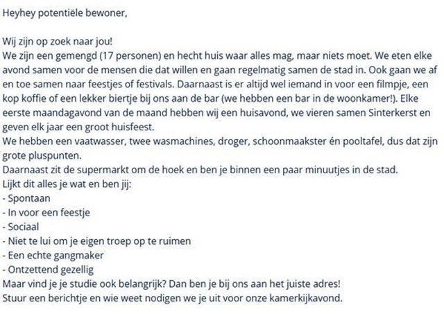 - Type woning: studentenkamer