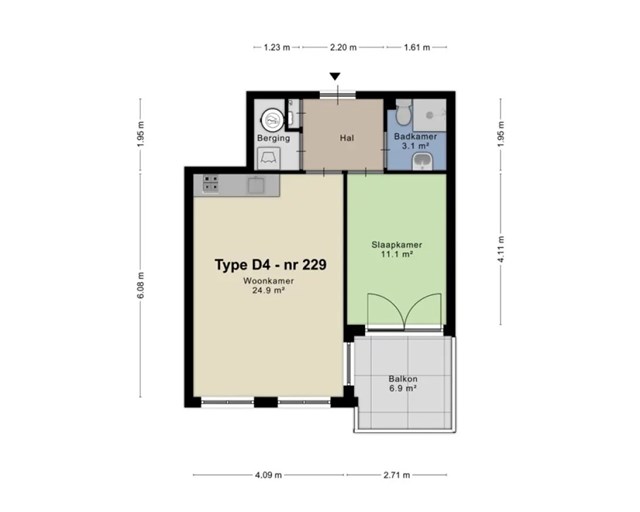 - Aantal slaapkamers: 1